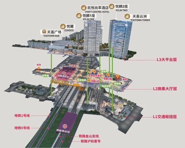 站在天荟的露台上,既能看到莘庄立交桥的车水马龙,也能望见1、5号线与沪昆高铁、金山铁路列车的呼啸而过,通勤族可以在换乘间隙买杯咖啡,家庭能在周末体验亲子工坊,商务人士可在下班后直接赴约宴请——消费场景与城市生活、交通通勤完美交织。