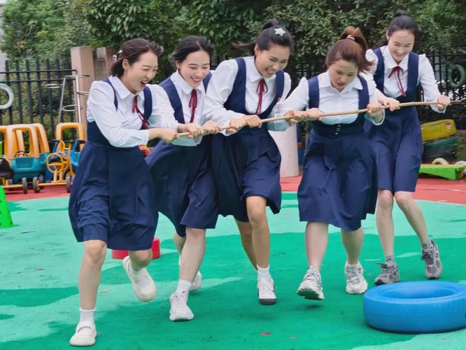 最后的拔河压轴赛,哨声一响,全员倾力、齐心向后——一根绳,一条心,一股劲。那是幼教人的缩影:用尽全力,守护孩子们的天地。