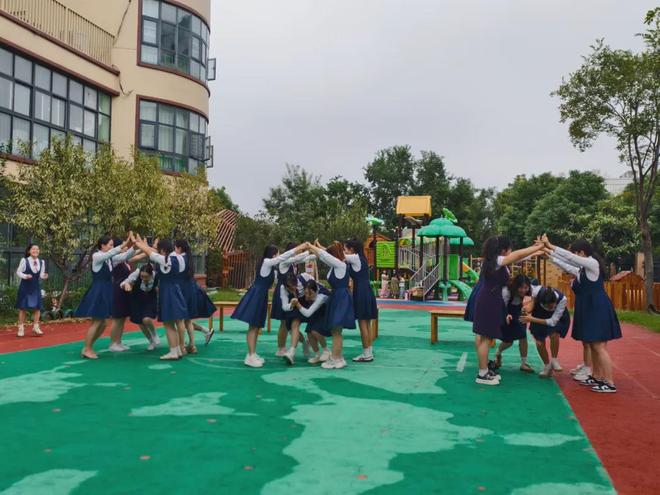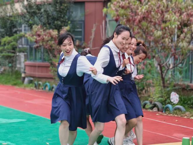旋风跑将气氛推向高潮。小组挽手、齐步旋转,奔跑中衣角飞扬,笑声洒满跑道。那是活力,是信任,更是幼教人永远年轻的注脚。