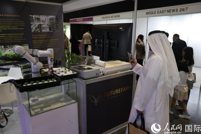 在展览现场,多家中国企业展示的新产品和新技术受到中东客商欢迎。一家位于深圳的照明企业研发的LED灯光系统,能够通过调整光谱组合和光照强度,优化农作物的产量和质量;另一家位于中国香港的企业带来的全自动移栽和播种机械臂,能够有效提高垂直农场耕作效率,将智慧农业里面引入其中。“中国在垂直农业领域技术优势明显,我们希望与中国企业开展更多合作。”阿联酋无土栽培农场经理阿姆贾德·奥马尔对记者说。